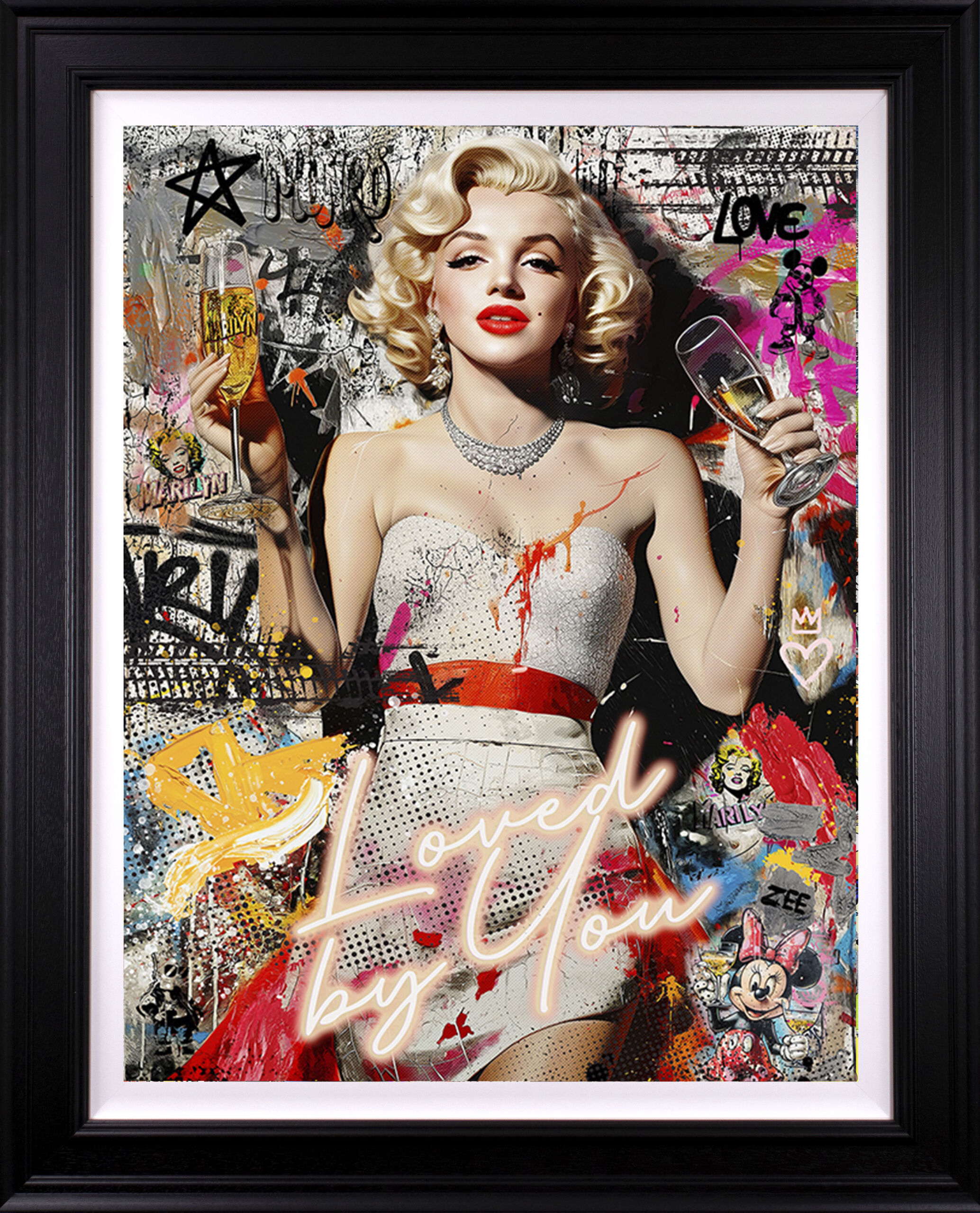 Oversized, Fine Art Hahnemühle Giclée Prints. Framed directly behind Tru-Vue, Non reflective Museum Glass (with separate certification included) Framed with Black Hardwood Moulding.